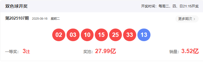 跨度为:31,大小比:2:4,奇偶比:4:2, 质合比:2:4,蓝球开出奇数质数大号码:13。