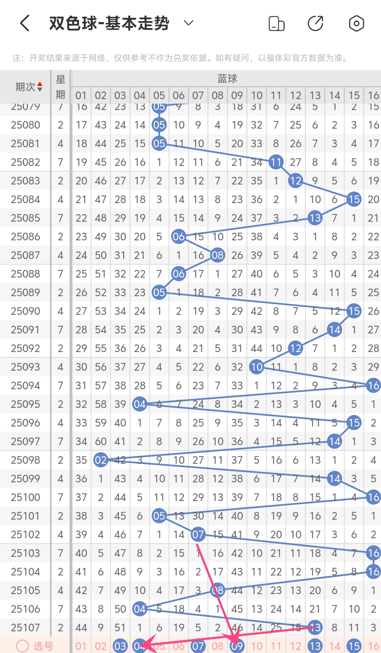 下面双色球的蓝球走势图分析: