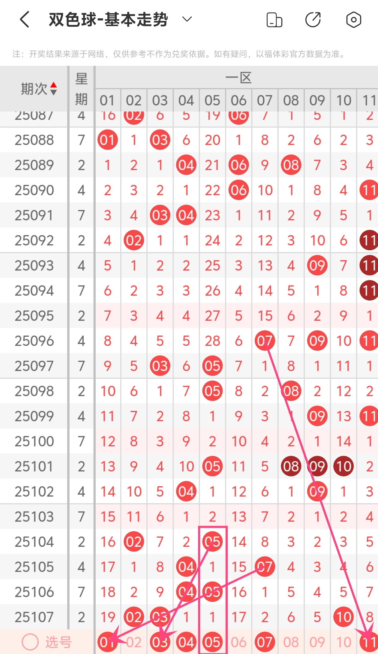 下面双色球的第一区间走势图分析:
