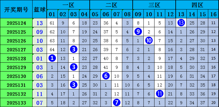 福彩双色球上周四开奖号码为:红球03 13 14 18 24 31,蓝球03