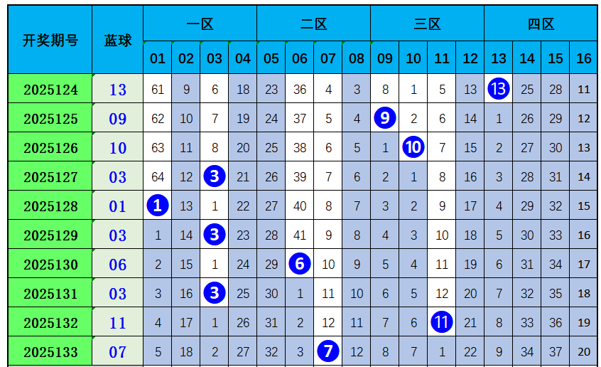 上期开出奇数蓝球07,近10期开出奇数号码8次,开出偶数号码2次,奇偶比8:2,近期奇数奖号出号较热。本期预计开出偶数号码:10。