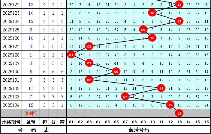 蓝球推荐:蓝球上期奖号为12,开出偶数蓝球,本期注意蓝球转向,看好奇数蓝球号码出现,参考五码蓝球04、08、09、10、13。