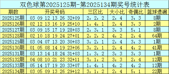 红球三区比推荐:最近3期红球三区比分别开出3:1:2、1:4:1、3:1:2,3期红球三区比总比例为7:6:5,本期看好红二区号码走势大热,预计红二区出现4个奖号,三区比关注1:4:1。