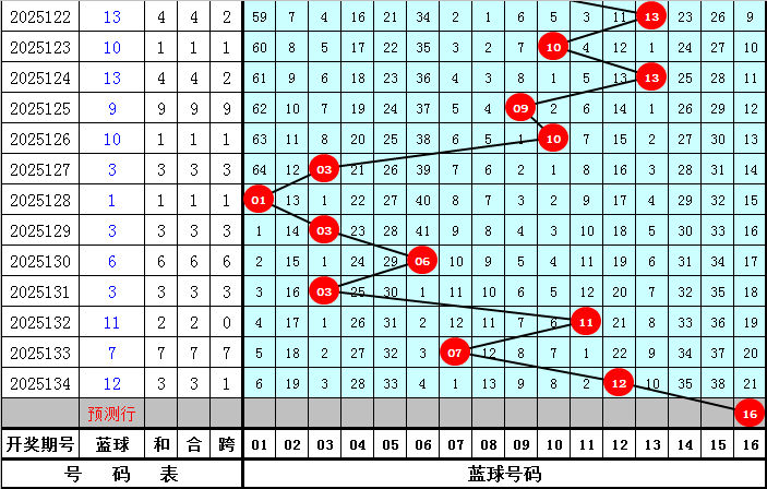 蓝球分析:上期蓝球落在第三区号码12,最近50期四区蓝球落号个数比为11:13:12:14,四区蓝球表现较热,一区蓝球表现较冷,本期预计蓝球出现在第四区,精选蓝球16。