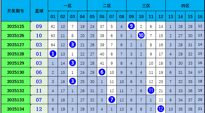 红一区(01-11):上期该区开出3个奖号03,05,09。近10期开出 21个奖号。总体较温。本期推荐该区奖号:01,09。