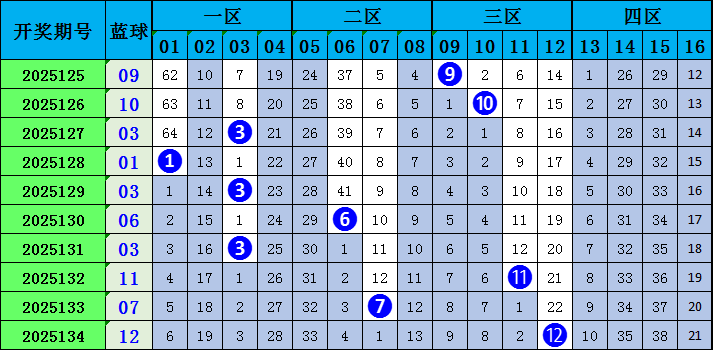 双色球蓝球综合分析: