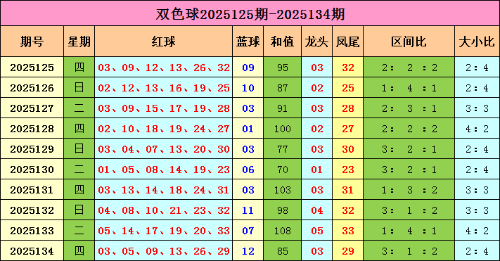 双色球上期开奖号码回顾:红球03 05 09 13 26 29;蓝球12,红球号码大小比为2:4,三区比为3:1:2。蓝球开出大偶数12。