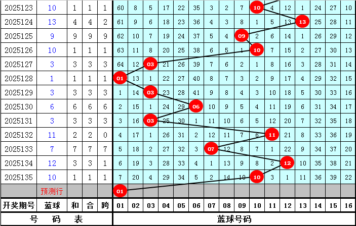 蓝球大小:近50期蓝球大小比为26:24,大小蓝球开出比例基本相当,近10期蓝球大小比为4:6,小 号蓝球活跃,本期蓝球防小 号01、04。