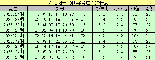 双色球上期第2025135期奖号为01 02 05 09 25 32 + 10,红球号码奇偶比为4:2,大小比为2:4,和值为74,跨度:31。