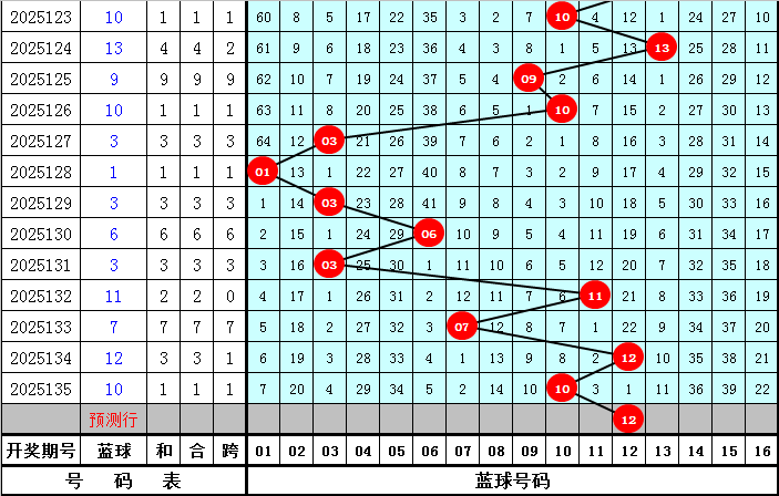 蓝球推荐:最近10期蓝球开出尾数:3出现3次,0、1出现2次,2、6、7出现1次,4、5、8、9出现0次,本期蓝球看好开出偶数号码,关注蓝球12。