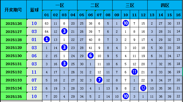 上期蓝球开出号码10,近10期开出号码大小比为4:6。本期蓝球大范围推荐03、06、10、12、16,一码蓝球关注10。