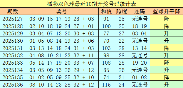 上期开奖:福彩双色球第2025136奖号开出:08 10 14 23 28 32 + 12,红球号码和值为115,首尾间距为24,无连号。
