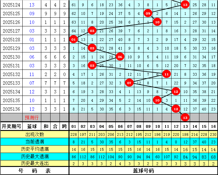 蓝球分析:上期蓝球开出号码12,上升2个点位,最近10期蓝球号码升平降分别为:降、降、升、升、降、升、降、升、降、升,本期防蓝球号码上升,一码蓝球关注13。