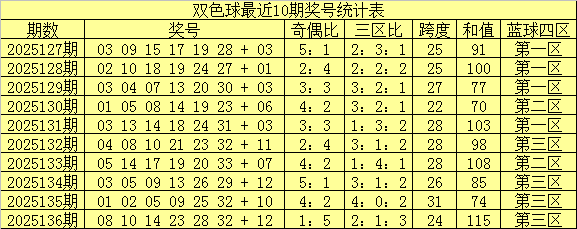 南华天第2025137期双色球区间号码个数统计分析:(红球:01-11为一区,12-22为二区,23-33为三区;蓝球:01-04为一区,05-08为二区,09-12为三区,13-16为四区)