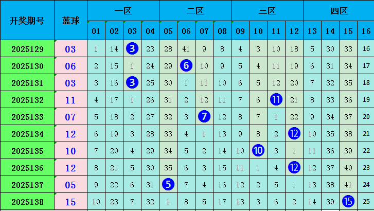 蓝球:前10期蓝球分别为:03 06 03 11 07 12 10 12 05 15,其中奇偶蓝球奇数球胜出,本期看好偶数蓝球,参考蓝球10.