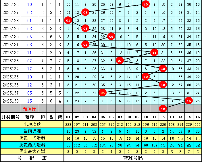 蓝球分析:最近9周星期二蓝球分别开出号码:16、02、03、08、13、03、06、07、12,本周星期二预计蓝球为偶数号码,关注蓝球号码12。
