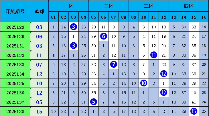 双色球第2025138期开出奖号:10 13 14 23 24 27+15。红球号码三区比为1:2:3,冷热比为1:5。