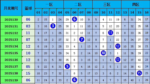 双色球蓝球分析:
