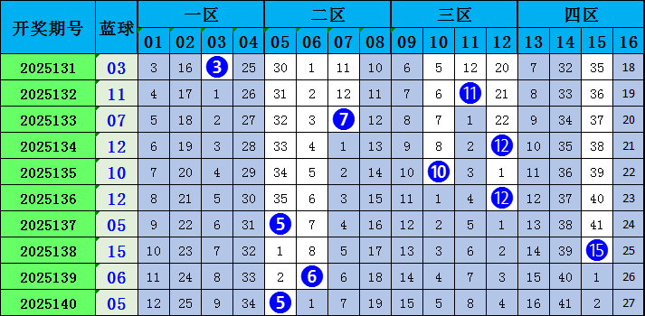 双色球蓝球综合分析: