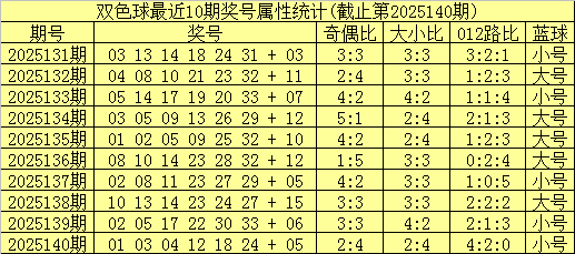 奇偶分析:上期红球奇偶比开出2:4,偶数红球较热,最近10期奇偶红球总比例为31:29,奇偶红球出现比例基本持平,本期预计奇偶红球继续平衡出现,关注奇偶比3:3。