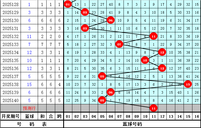 蓝球推荐:蓝球上期开出奖号05,为奇数蓝球,本期预计蓝球继续开出奇数号码,蓝球参考01、03、11、13、14。