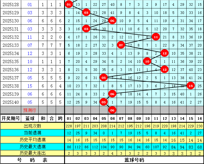 上期开奖:福彩双色球第2025140奖号为:01 03 04 12 18 24 + 05,红球和值为62,最大间距为8,奇偶比为2:4,三区比为3:2:1。