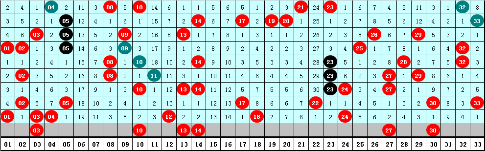 2、凤尾分析:最近十期凤尾号码分布在24-33区间,走势比较集中,凤尾奇偶比为6:4,奇偶凤尾开出次数基本相当,本期看好凤尾为偶数,关注号码30。