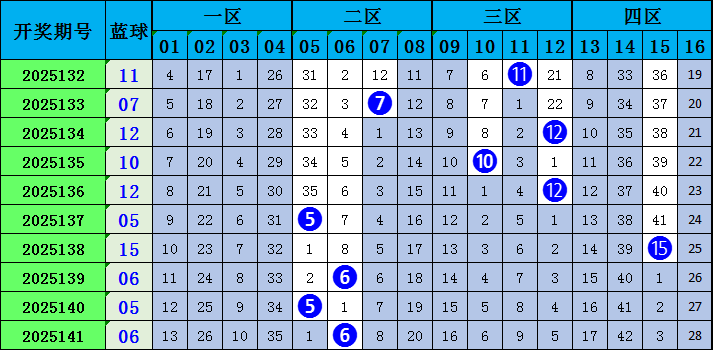 红二区(12-22):上期该区出2个12、13,前十期号码12出现2次,号码13出现3次。前十期该区断区2次,出现15个号码。本期预计红二区落号,放弃断区现象,该区号码重点关注13、17、21。