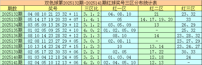 双色球第2025141期开出奖号为:02、04、05、10、12、13+06,其中红球三区比为4:2:0,蓝球开出偶数、小 号、0路号码。