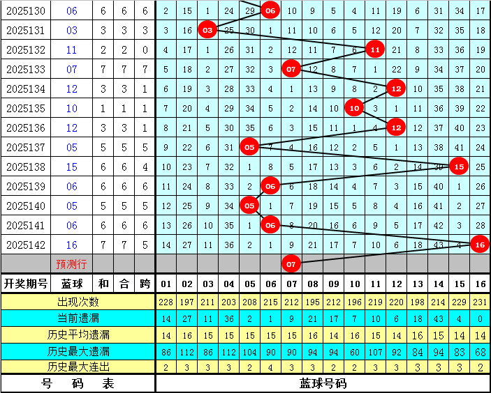 蓝球:上期蓝球号码为16,开出偶数、大号,蓝球最近7期大小比为3:4,本期注意小 号蓝球出现,蓝球关注07。