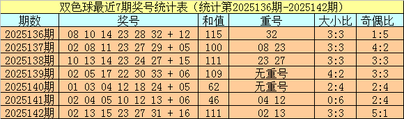 开奖回顾:双色球第2025142期奖号为:02 13 15 23 27 31 + 16,红球和值为111,奇偶比为5:1,大小比为3:3。蓝球开出偶数。