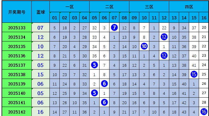蓝球分析:上期蓝球号码16属于偶数,近10期蓝球奇偶比是4:6。偶数号码活跃度较高。本期预测开出偶数号码10。