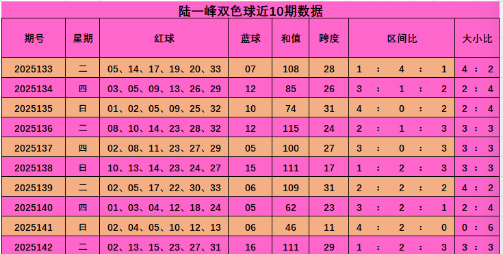 陆一峰双色球本期推荐:
