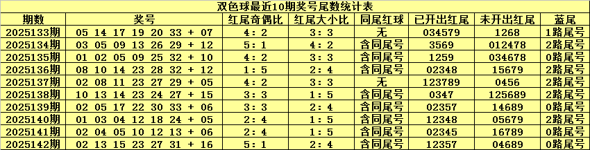 双色球第2025142期奖号为:02 13 15 23 27 31 + 16,红球尾数为:12357,包含同尾红球:13 23。