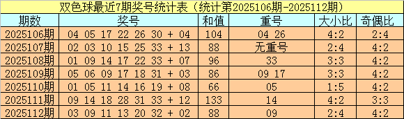 开奖回顾:双色球第2025112期奖号为:03 09 11 13 20 32 + 02,红球和值为88,奇偶比为4:2,大小比为2:4。蓝球开出偶数。
