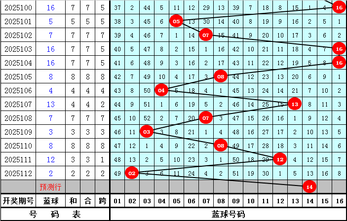 在历史同期第113期开奖中:蓝球号码012路比为8:5:8,本期注意蓝球开出2路号码,精选蓝球号码14。