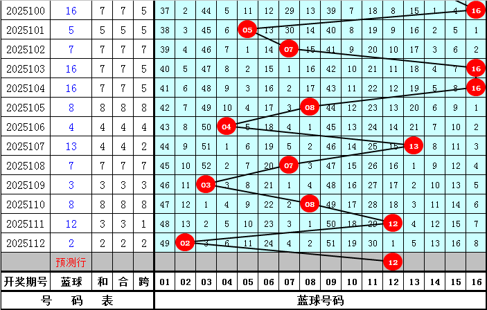 蓝球分析:去年第113期蓝球奖号为11,开出2路蓝球,目前0路蓝球轮空1年,今年同期适当关注0路蓝球回补,看好号码12。