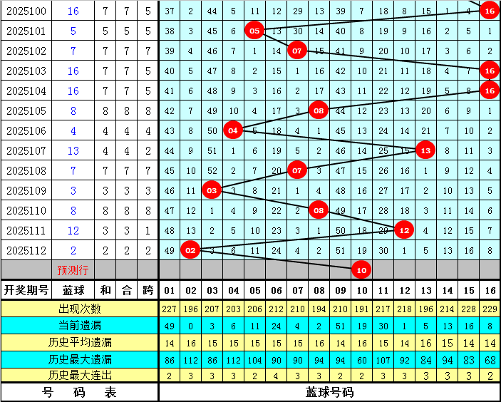 红球第六位:上期开出奖号32,为大号红球,与前期相比下降1个点位,近10期有9期红球第六位奖号包含在27-33区段,表现比较活跃,本期红球第六位预计再次出现在该区段,推荐奖号29。