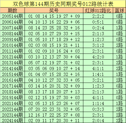 福彩双色球第2025144期历史同期王守礼012路奖号遗漏分析: