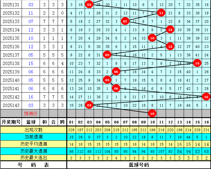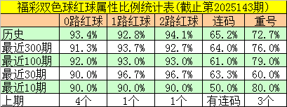 上期开奖:福彩双色球第2025143期奖号为:02 09 12 13 15 24 + 03,红球012路比为4:1:1,包含连码:12 13,开出3个重号:02、13、15。