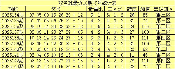 南华天第2025144期双色球区间号码个数统计分析:(红球:01-11为一区,12-22为二区,23-33为三区;蓝球:01-04为一区,05-08为二区,09-12为三区,13-16为四区)