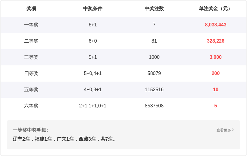 | 期号 | 开奖号码 | 一区 | 二区 | 三区 |
