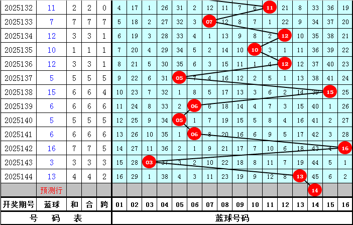 蓝球分析:第2025144期开出蓝球13,最近10期蓝球号码遗漏期数分别为:8期、1期、35期、41期、8期、2期、1期、28期、11期、19期,第2025145期蓝球注意08-14段出号,重点关注2路蓝球,参考蓝球:14。