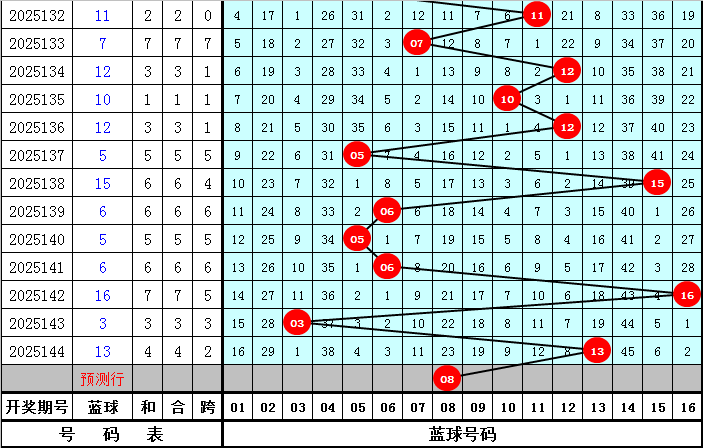 蓝球分析:上期蓝球开出奇数号码:13,最近10期蓝球号码奇偶比为5:5,前5期蓝球号码奇偶走势为:奇-偶-偶-奇-奇,根据近期蓝球奇偶走势判断,本期预计蓝球开出偶数号码。