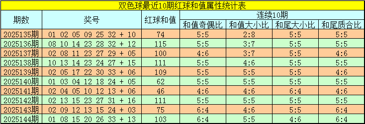 福彩双色球第2025145期红球和值综合分析: