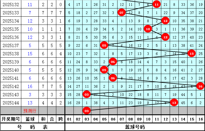 跨度:上期红球跨度为32,走大10个点位,本期注意跨度反向走小,预计在30附近出现。