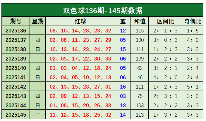 双色球第2025145开奖奖号:红球11、12、15、18、25、32,蓝球14。红球和值为113,区间比为1:3:2,奇偶比为3:3。蓝球开出14。