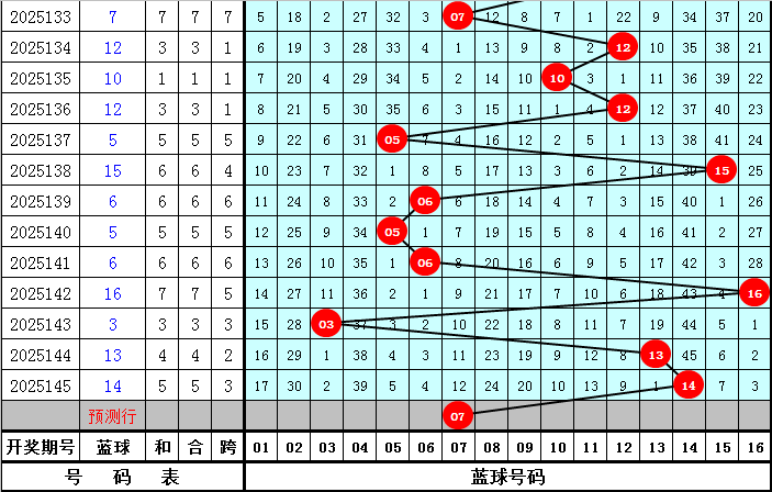 蓝球推荐:蓝球上期奖号为14,开出偶数蓝球,本期注意蓝球转向,看好奇数蓝球号码出现,参考五码蓝球05、07、08、13、16。