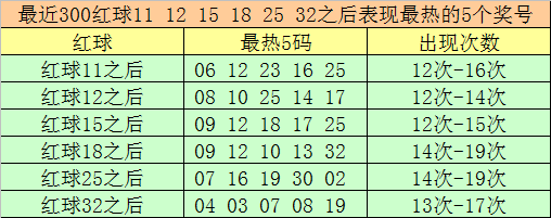 红球11之后最热5码为:06、12、23、16、25;