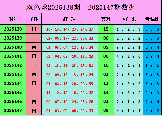 双色球第2025147期开奖:本期开奖号:01 03 05 08 22 33。蓝球:08,奇偶比为4:2。
